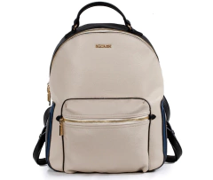 Mochila mediana combinada y bolsillo con cierre al frente. Logo metálico y correas regulables.